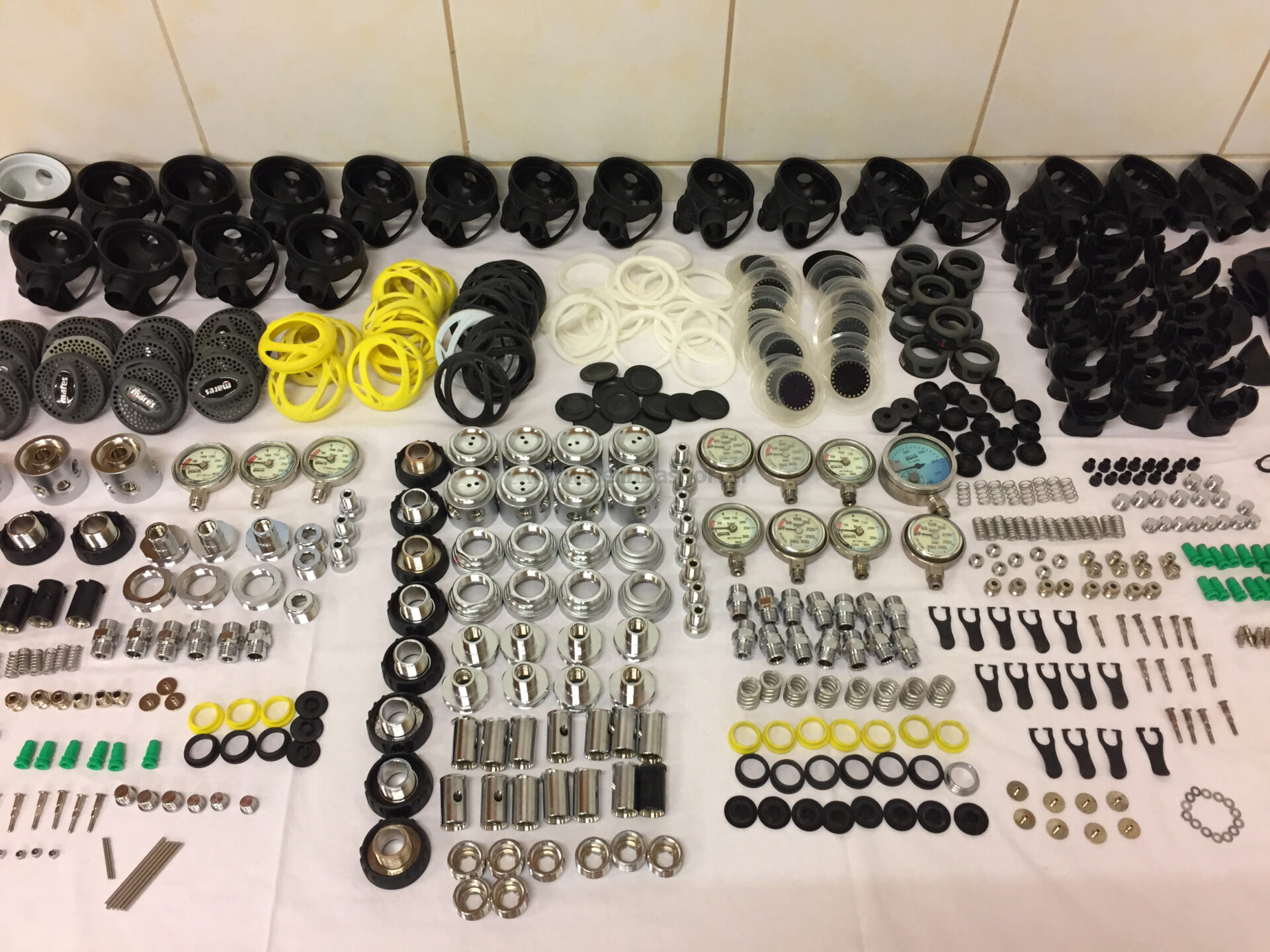 Opravimo servise regulatorjev, kompenzatorjev plovnosti, menjamo baterije v računalnikih, ventile jeklenk, popravljamo pnevmatske puške in druga popravila. Vsak servisiran kos opreme preizkusimo na testnem stolu in v komori.